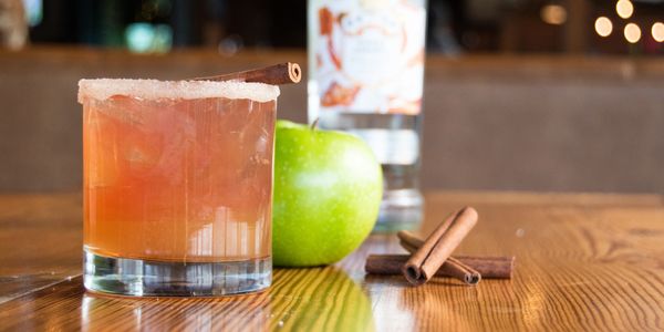 smirnoff caramel vodka, apple cider, monin granny smith puree, maple syrup, lemon juice, cranberry, cinnamon stick