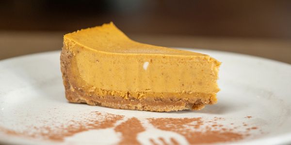 creamy pumpkin spiced cheesecake, gluten-free crust, whipped cream